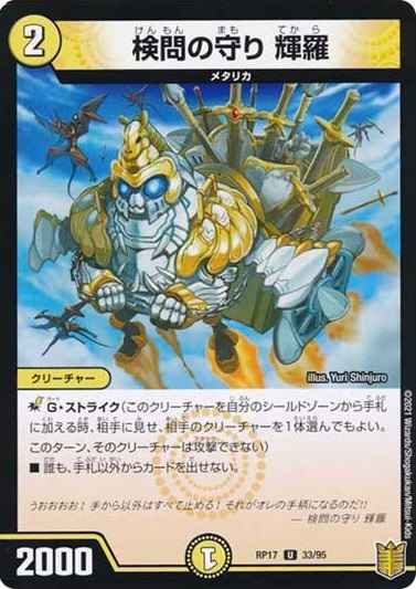 {GS} G・ストライク(このクリーチャーを自分のシールドゾーンから手札に加える時、相手に見せ、相手のクリーチャーを1体選んでもよい。このターン、そのクリーチャーは攻撃できない)